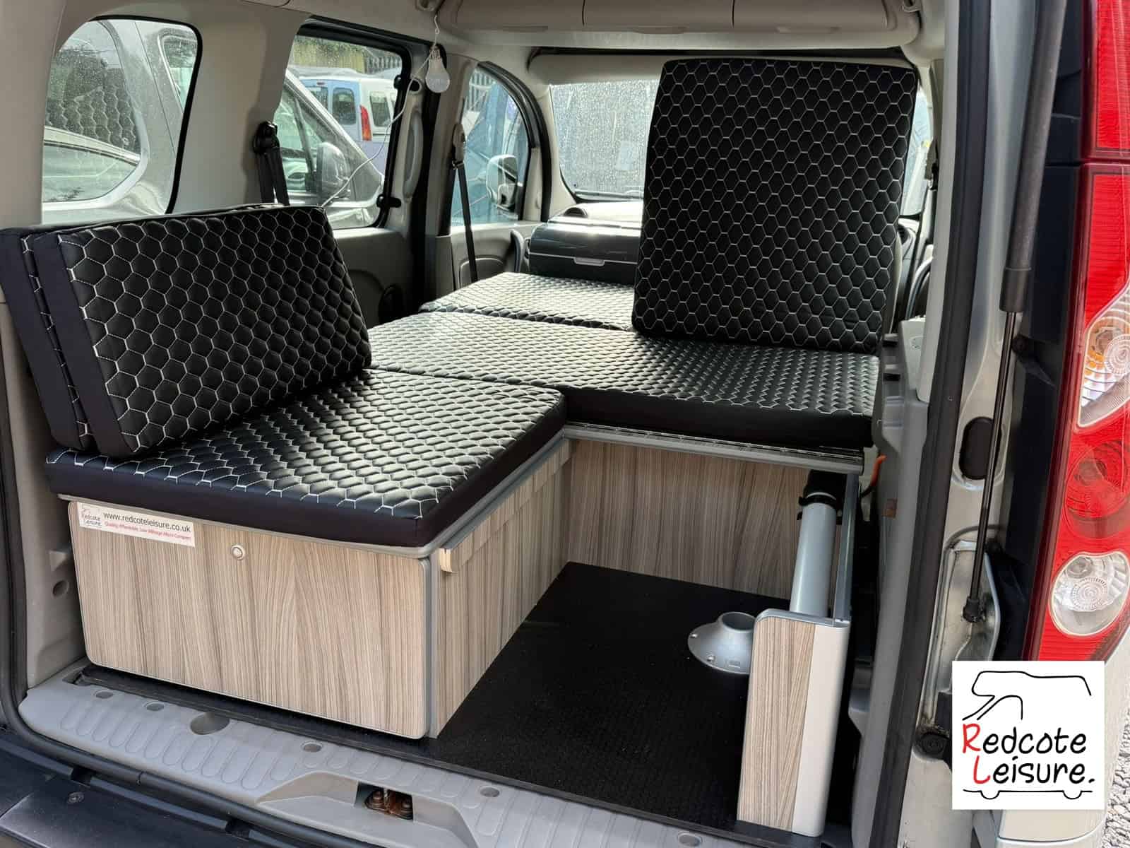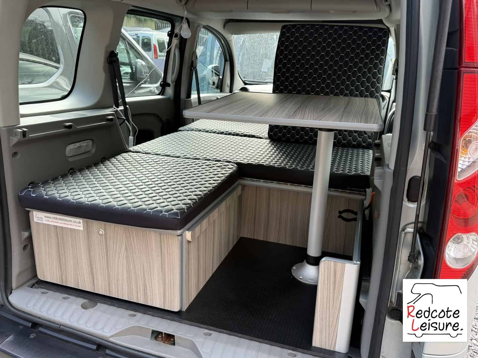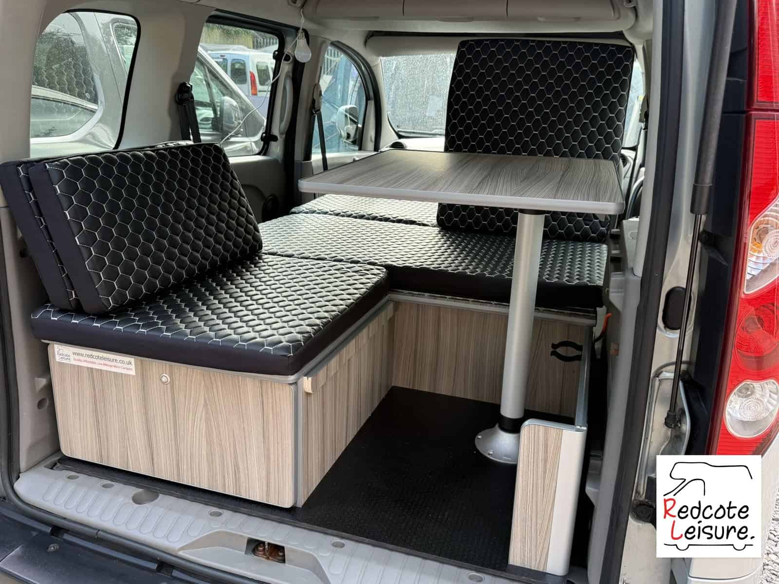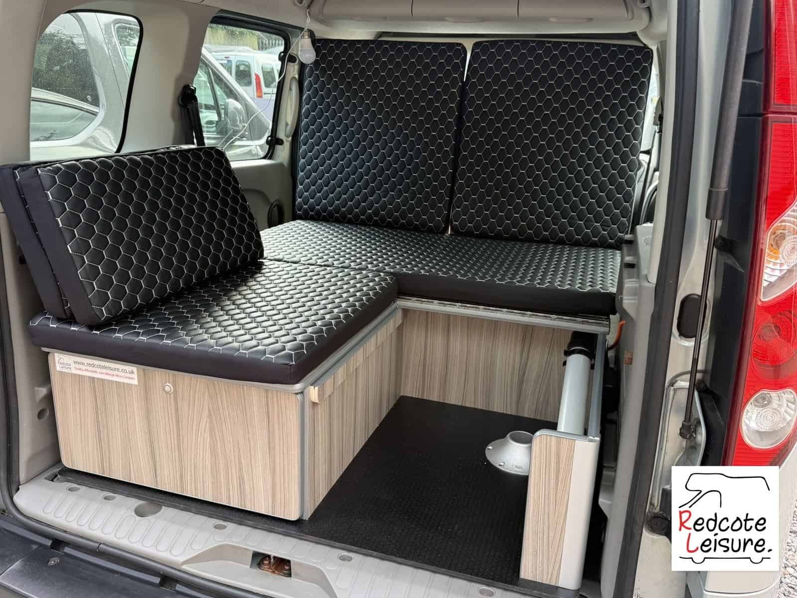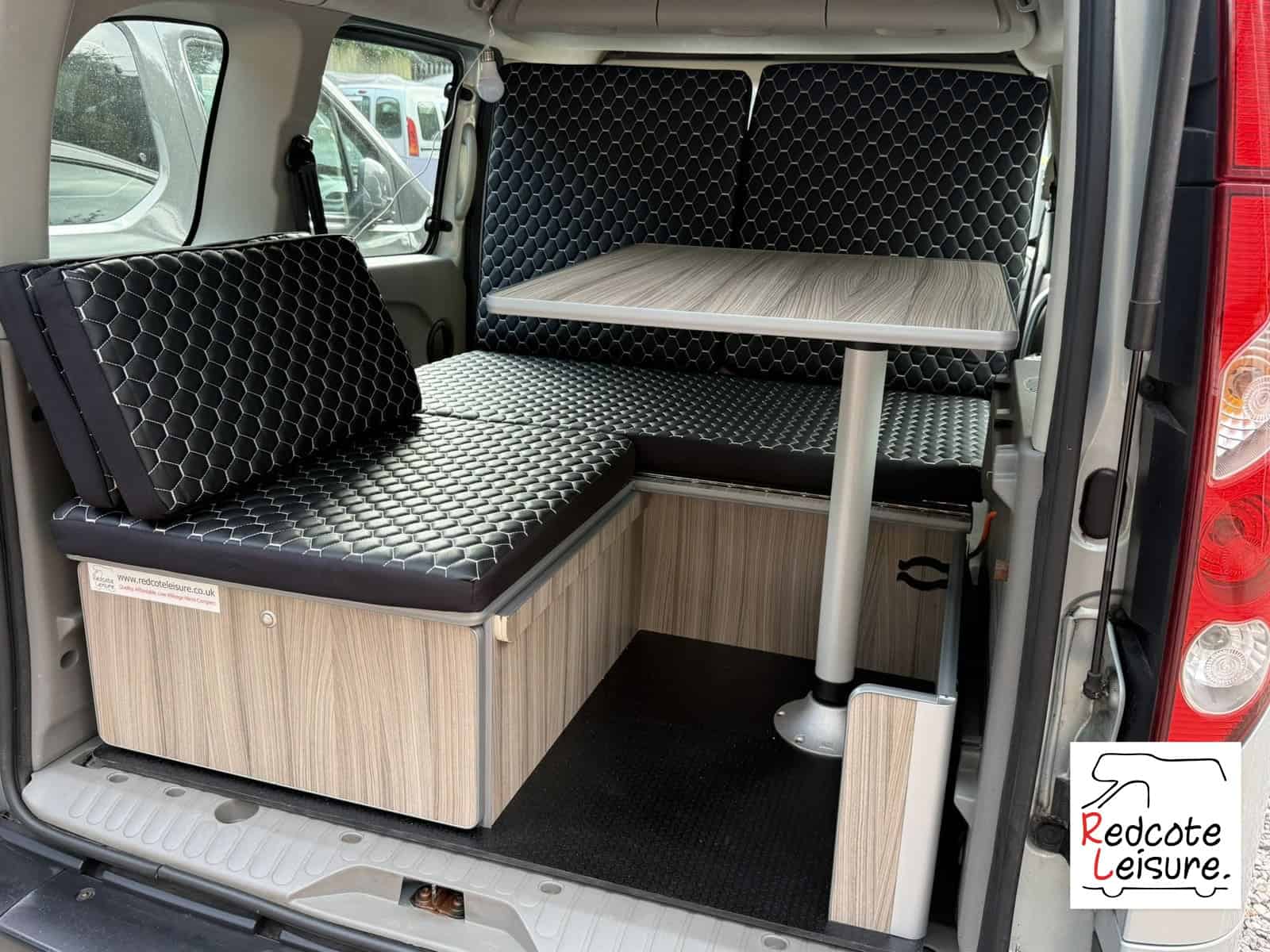 - Rear seating, L-shaped seating area