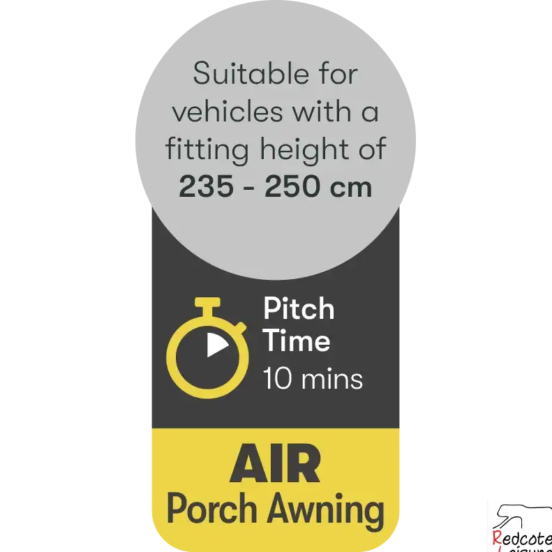 Upgrade your outdoor living space with this lightweight AIR porch awning, designed for effortless setup and maximum versatility. Features an integrated 12v electric air pump which will inflate quickly and evenly, removing the hassle of manual pumping.