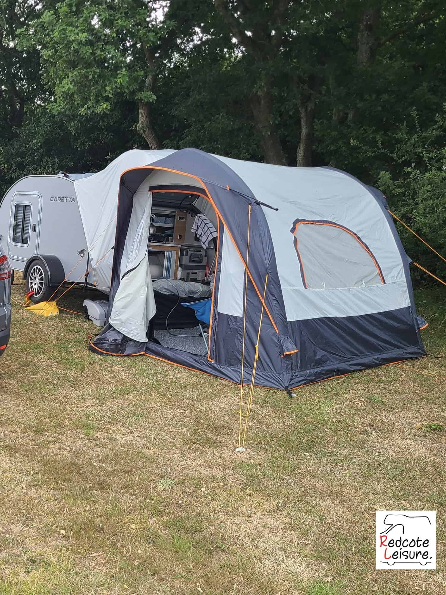 Redcote Leisure a pleased to offer our own Compact vehicle Awning Ideal for extra Living area offering a door on either side both with wet weather canopies and 2 windows so you can watch the world go by on those rainy days