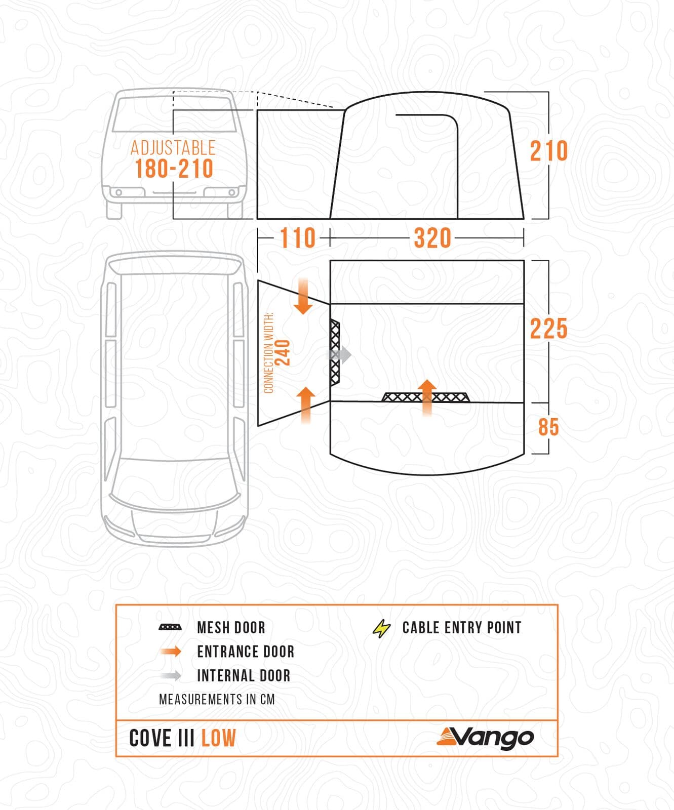 • Mesh Front Door – Fitted with an internal mesh fly screen for bug-free ventilation