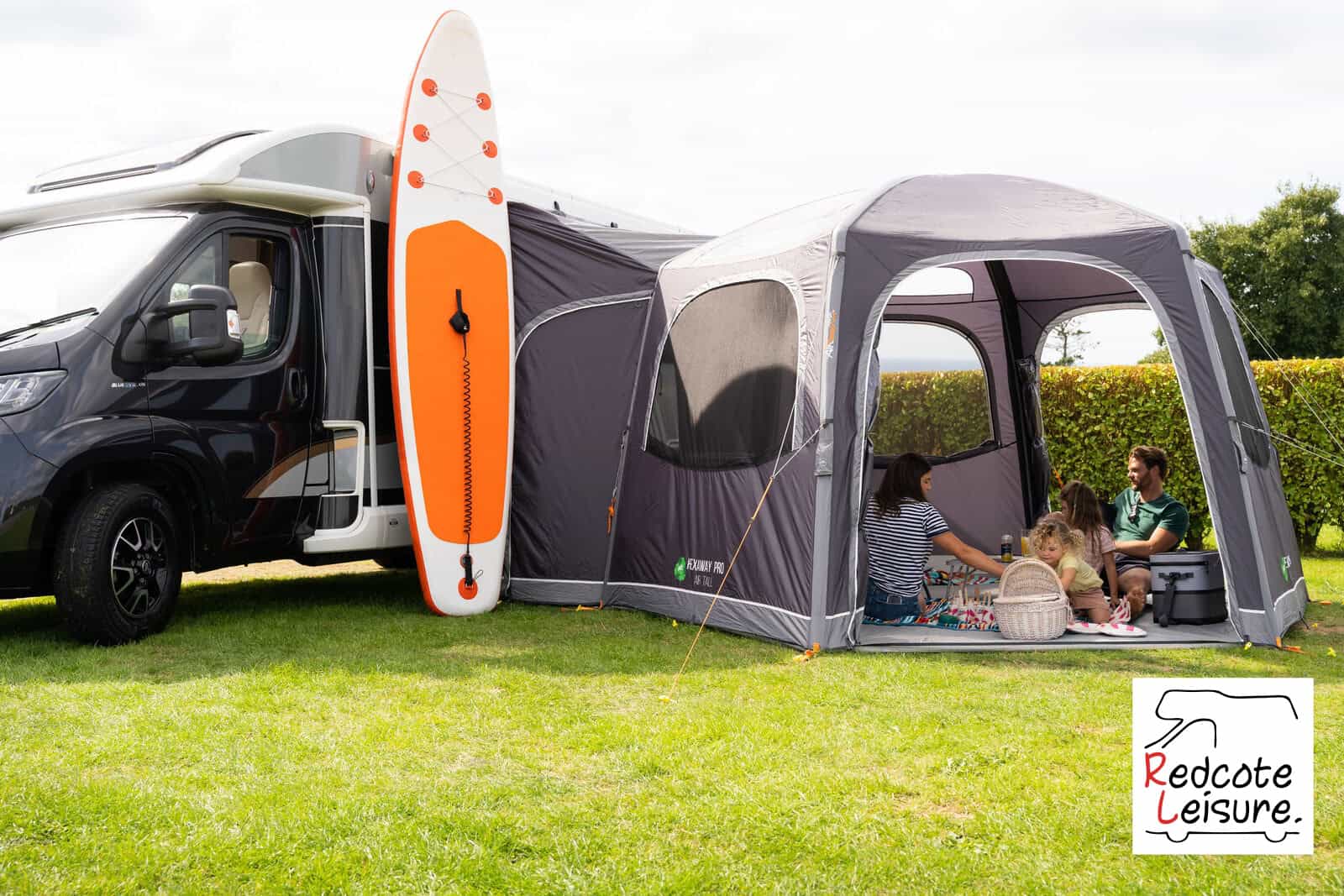 A perfect place to socialise, the popular Vango HexAway Pro Air Tall awning creates a spacious living room-style extension to your vehicle. The hexagonal design ensures that you can maximise all the space when spending time with family and friends. The Sentinel ECO Pro fabric, made using recycled materials, is perfect for touring with your vehicle, and the single inflation system is quick and easy to both erect and deflate. The connecting tunnel is easily rolled away if you’re off exploring for the day and features 2 side entrance doors for easy access.