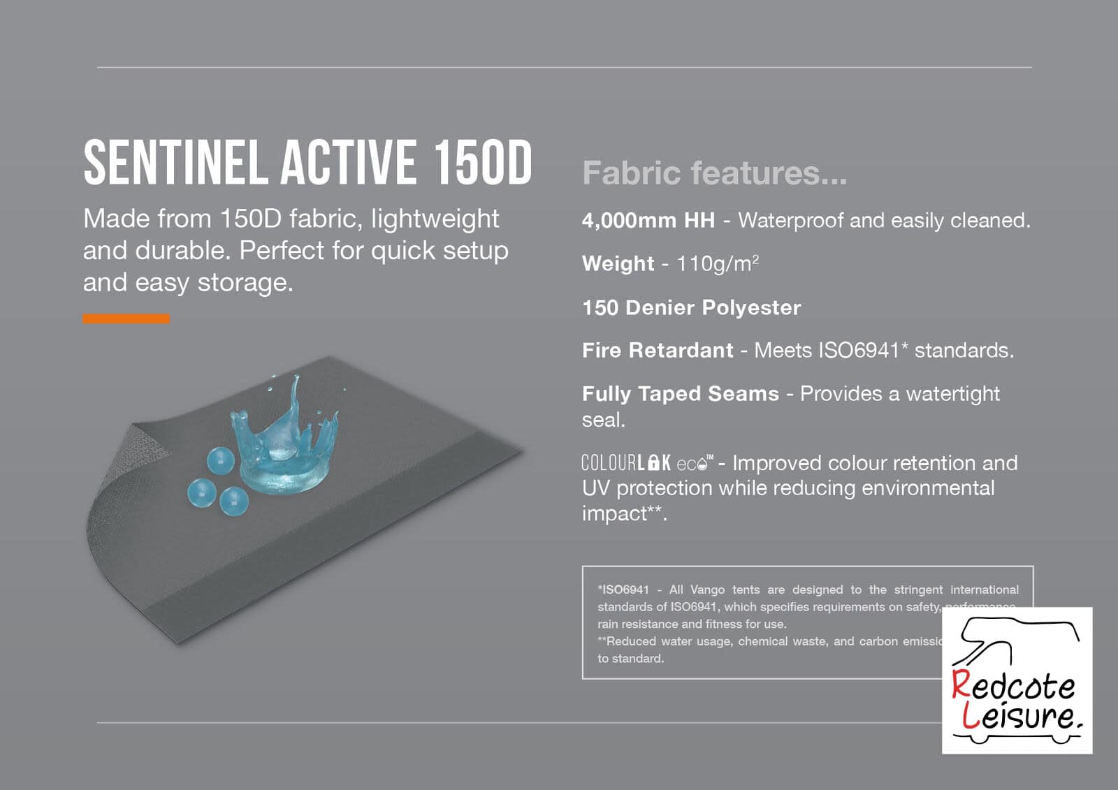 • Lightweight, durable and waterproof. 150D fabric with an HH rating of 4,000MM. Benefits from ColourLok Eco technology to aid colour retention.