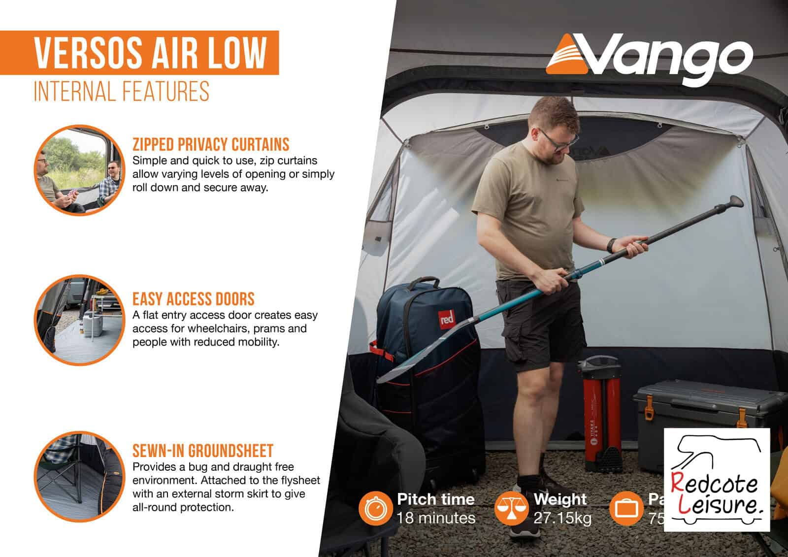 • Adjustable Pegging Points – Allows awning to be pitched perfectly on uneven surfaces
