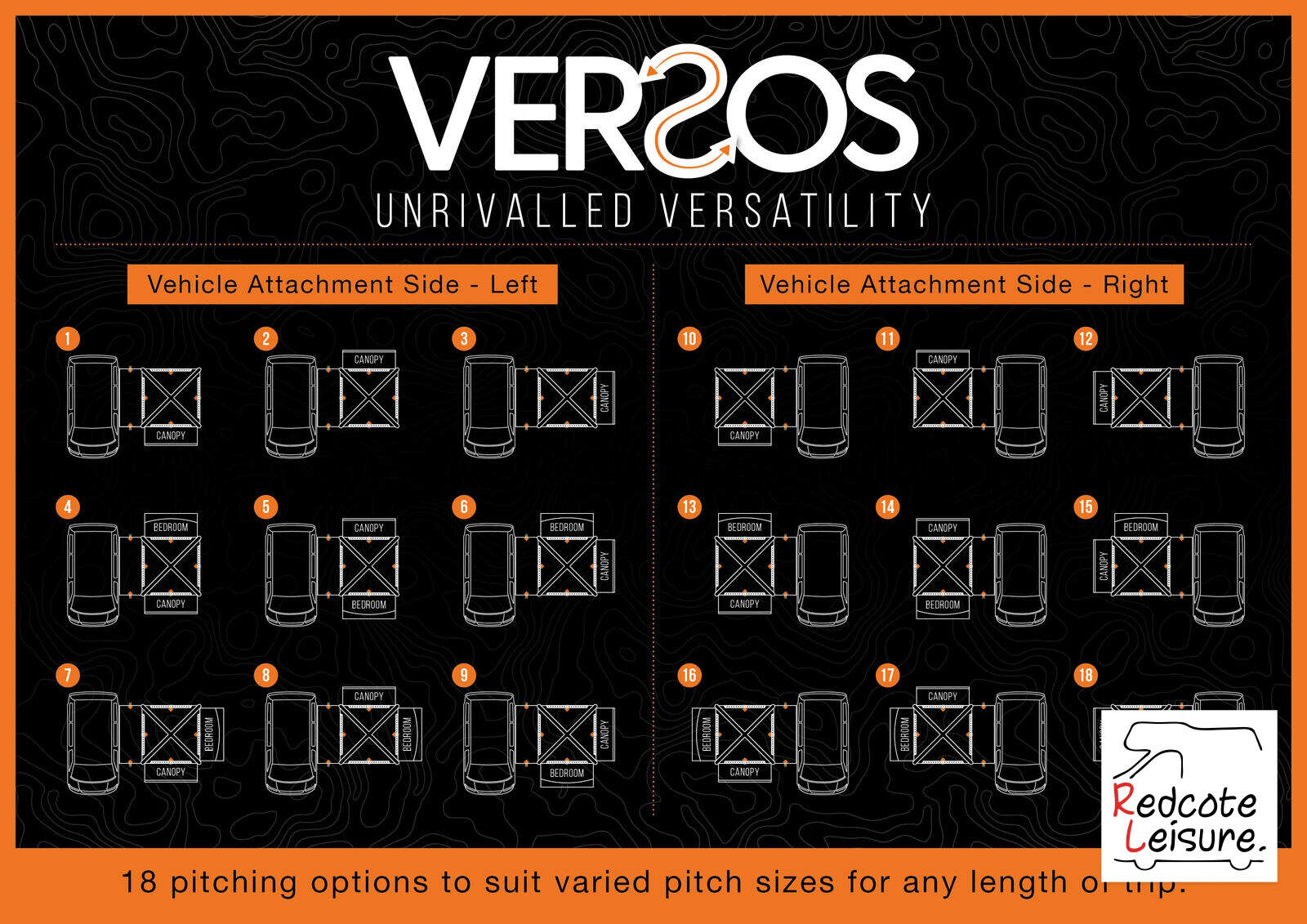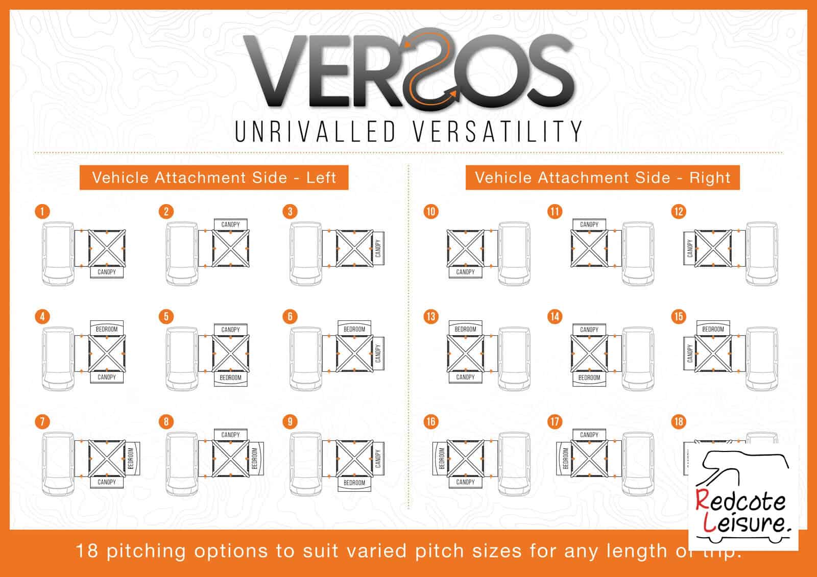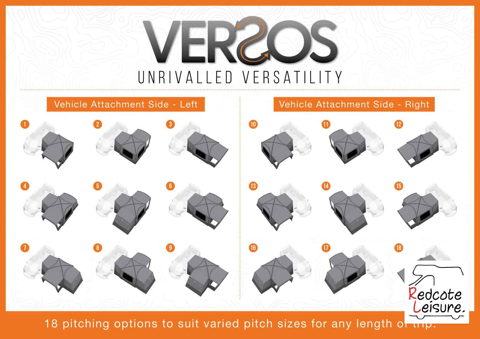 • Annexe and bedroom attachments can be arranged to allow you to choose whether your awning is front or side facing. Versatility also makes this an ideal choice for vehicles with a right-hand side rail.